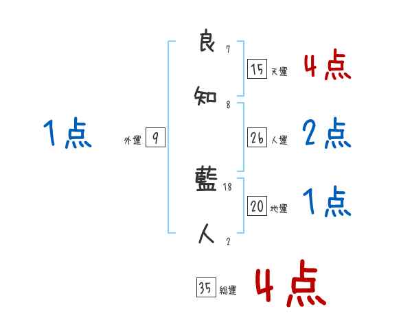 良知藍人さんの画数の鑑定結果