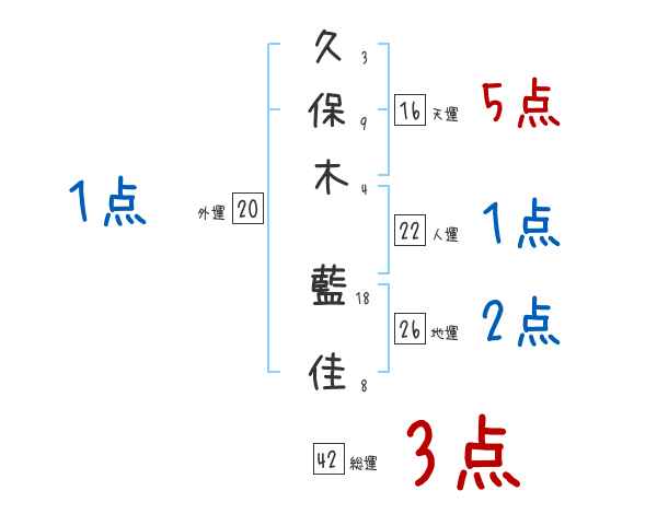 人運![]() | 久保木藍佳さんの人運は22画の1つ星!努力することが苦手ないっぽう手先が器用。芸術性にも優れる。 性格や才能などを表す2番目に重要な運勢です。人間関係や協調性、社会的な成功に影響します。主に20歳から50歳ぐらいまでの中年期の運勢を表します。 |
