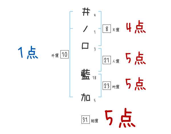 総運![]() | 井ノ口藍加さんの総運は31画の5つ星!社交性があり判断力に優れる。順風満帆な人生で円満な生活。 あなたの人生を表す1番重要な運勢です。生涯を通じて影響する総合運となり、主に50歳以降の晩年期に影響を及ぼします。 |