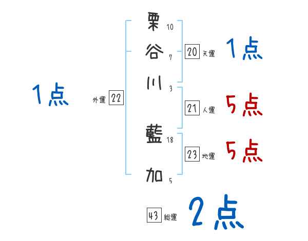 栗谷川藍加さんの画数の鑑定結果