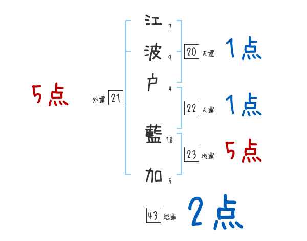 外運![]() | 江波戸藍加さんの外運は21画の5つ星!統率力がある。独立し成功する。名誉を手に入れる。 生活面を象徴する運勢です。外部から受ける影響力を表し、結婚運、家庭運や職場、環境への順応性を表します。 |