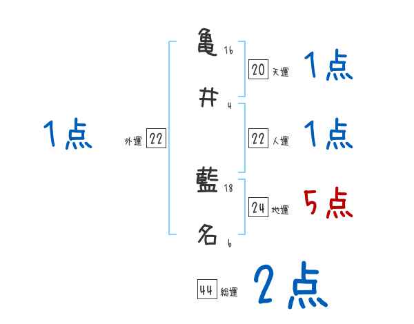 亀井藍名さんの画数の鑑定結果