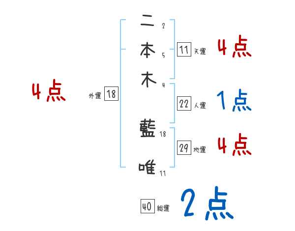 二本木藍唯さんの画数の鑑定結果