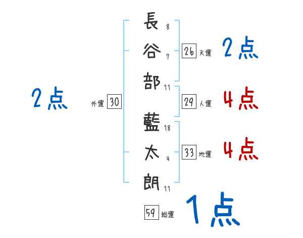 長谷部藍太朗さんの画数の鑑定結果