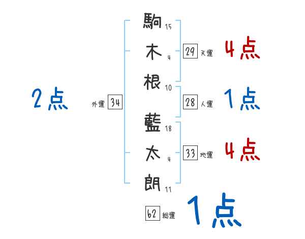 駒木根藍太朗さんの画数の鑑定結果