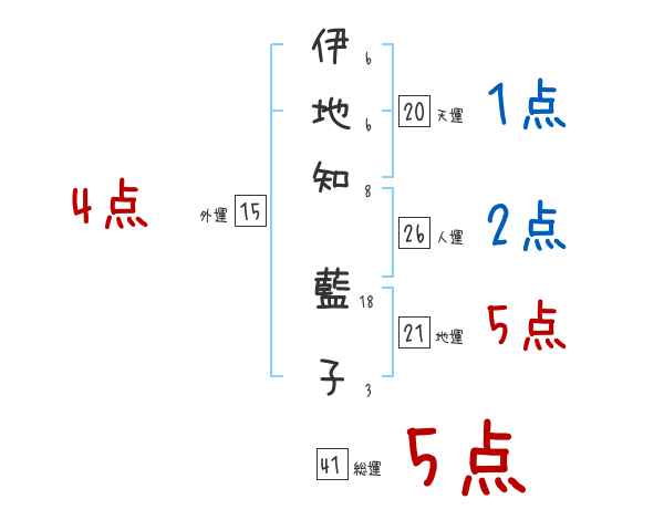 総運![]() | 伊地知藍子さんの総運は41画の5つ星!大志を抱き、目標に向かって実力を発揮し達成する。温和な性格。 あなたの人生を表す1番重要な運勢です。生涯を通じて影響する総合運となり、主に50歳以降の晩年期に影響を及ぼします。 |