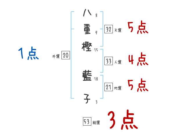 八重樫藍子さんの画数の鑑定結果