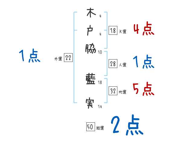 天運![]() | 木戸脇藍実さんの天運は18画の4つ星!情熱的で剛気。忍耐力があり信頼される。 家系が持つ宿命的な運勢を表します。祖先から受け継いだ苗字ですので自分の力が及びません。家柄を象徴します。 |