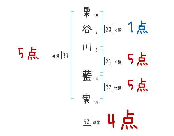 外運![]() | 栗谷川藍実さんの外運は31画の5つ星!社交性があり判断力に優れる。順風満帆な人生で円満な生活。 生活面を象徴する運勢です。外部から受ける影響力を表し、結婚運、家庭運や職場、環境への順応性を表します。 |