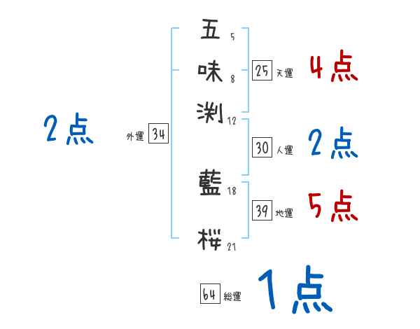 五味渕藍桜さんの画数の鑑定結果