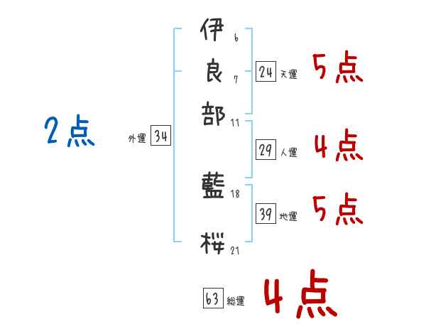 天運![]() | 伊良部藍桜さんの天運は24画の5つ星!家庭運が良く順調な人生。金運にも恵まれる。 家系が持つ宿命的な運勢を表します。祖先から受け継いだ苗字ですので自分の力が及びません。家柄を象徴します。 |