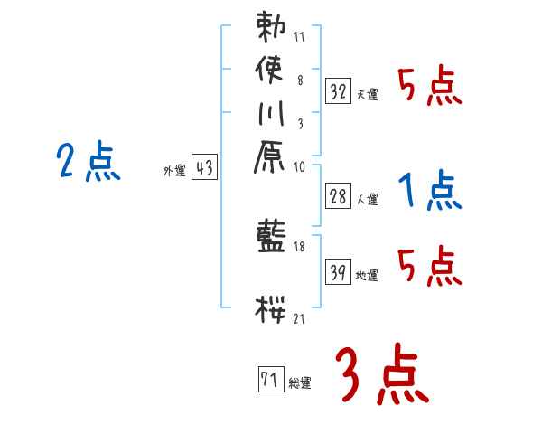 天運![]() | 勅使川原藍桜さんの天運は32画の5つ星!柔軟性があり成功する。チャンスが多く金運が良い。 家系が持つ宿命的な運勢を表します。祖先から受け継いだ苗字ですので自分の力が及びません。家柄を象徴します。 |