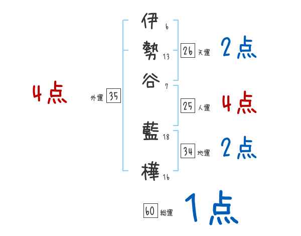 伊勢谷藍樺さんの画数の鑑定結果