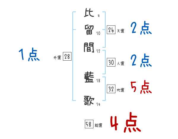 天運![]() | 比留間藍歌さんの天運は26画の2つ星!波瀾万丈かも。信頼できる人を大事にしましょう。 家系が持つ宿命的な運勢を表します。祖先から受け継いだ苗字ですので自分の力が及びません。家柄を象徴します。 |