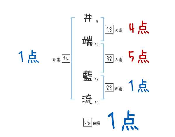 井端藍流さんの画数の鑑定結果