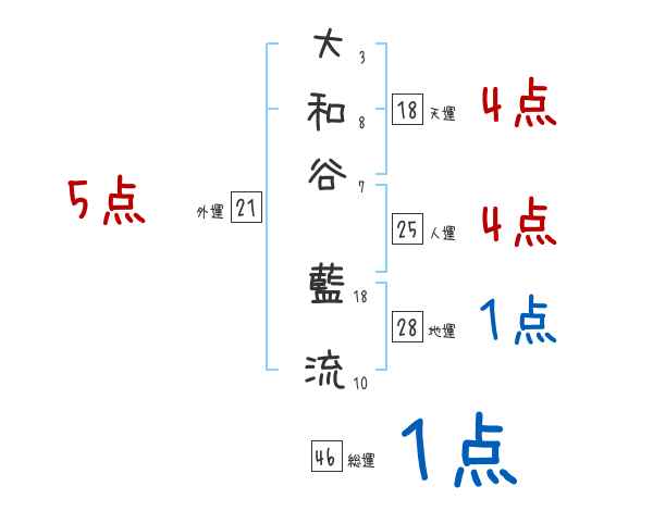 天運![]() | 大和谷藍流さんの天運は18画の4つ星!情熱的で剛気。忍耐力があり信頼される。 家系が持つ宿命的な運勢を表します。祖先から受け継いだ苗字ですので自分の力が及びません。家柄を象徴します。 |