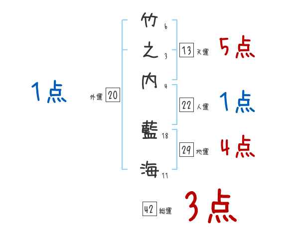 人運![]() | 竹之内藍海さんの人運は22画の1つ星!努力することが苦手ないっぽう手先が器用。芸術性にも優れる。 性格や才能などを表す2番目に重要な運勢です。人間関係や協調性、社会的な成功に影響します。主に20歳から50歳ぐらいまでの中年期の運勢を表します。 |
