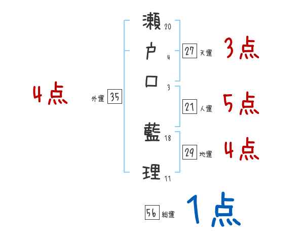 瀬戸口藍理さんの画数の鑑定結果