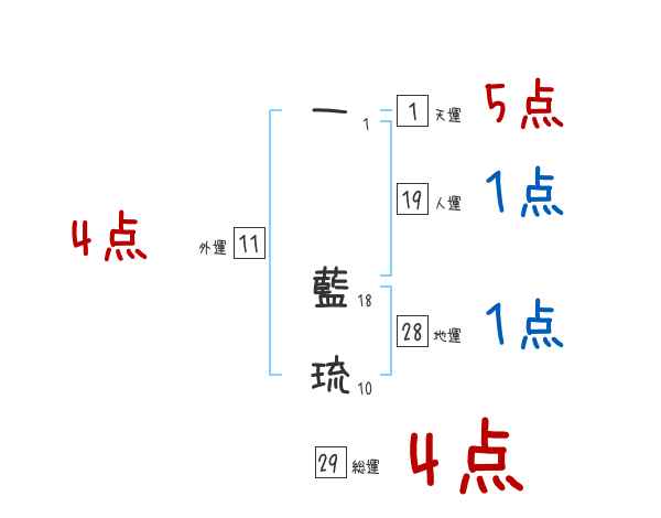 一藍琉さんの画数の鑑定結果