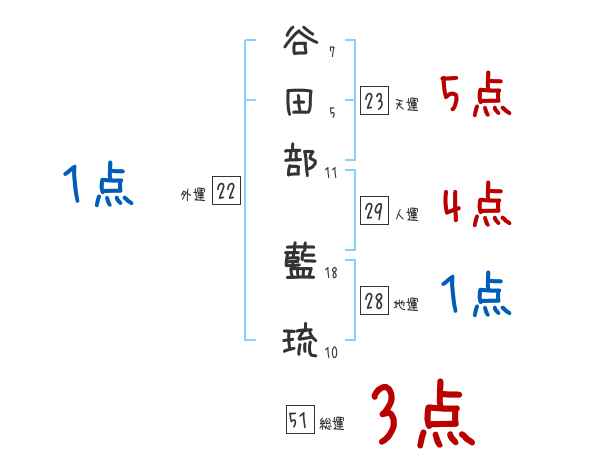 谷田部藍琉さんの画数の鑑定結果