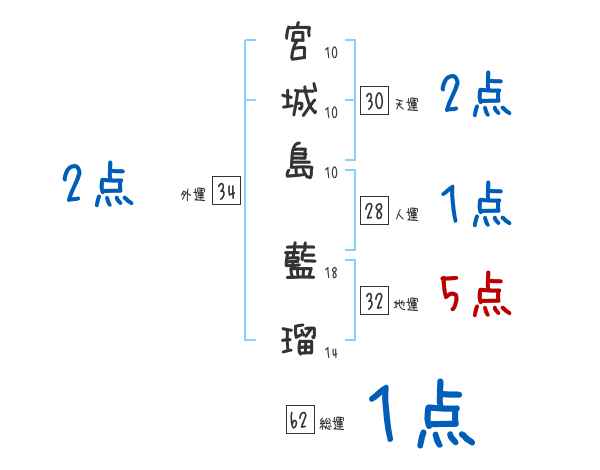 宮城島藍瑠さんの画数の鑑定結果