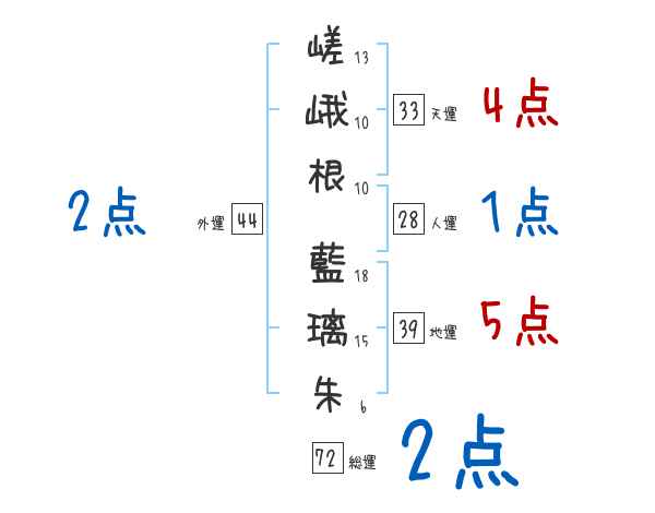 嵯峨根藍璃朱さんの画数の鑑定結果