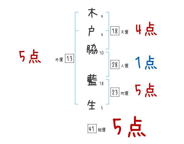 総運![]() | 木戸脇藍生さんの総運は41画の5つ星!大志を抱き、目標に向かって実力を発揮し達成する。温和な性格。 あなたの人生を表す1番重要な運勢です。生涯を通じて影響する総合運となり、主に50歳以降の晩年期に影響を及ぼします。 |
