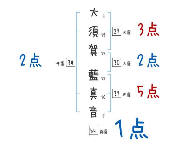 大須賀藍真音さんの画数の鑑定結果