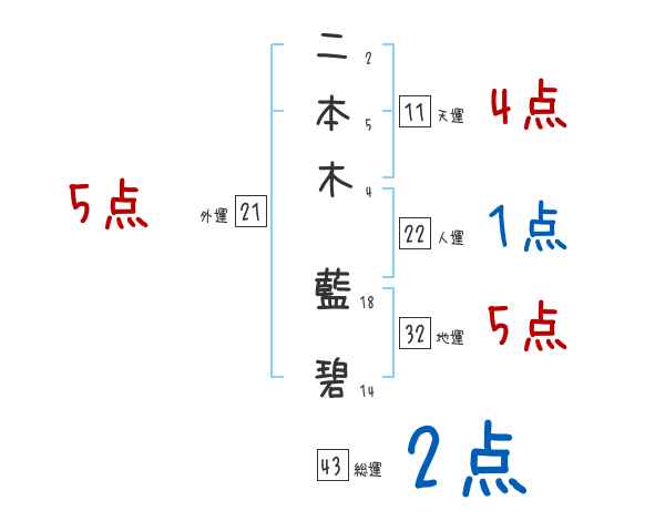 二本木藍碧さんの画数の鑑定結果