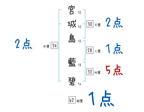 宮城島藍碧さんの画数の鑑定結果