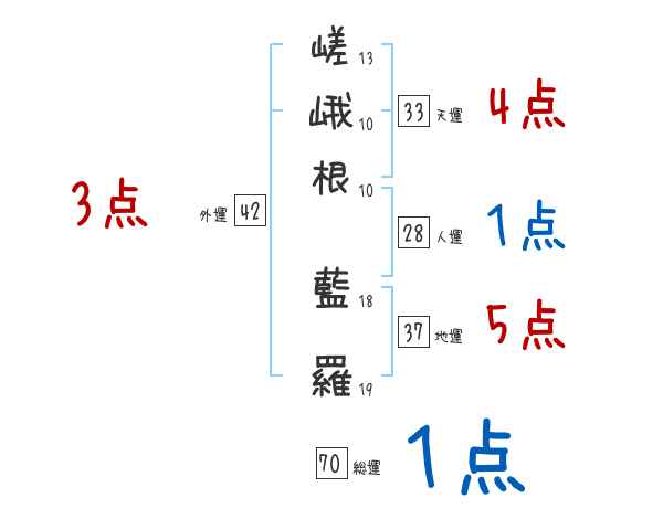 嵯峨根藍羅さんの画数の鑑定結果