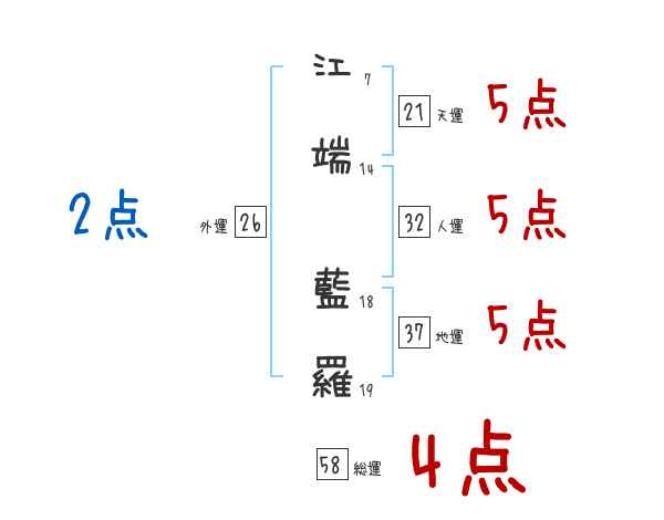 江端藍羅さんの画数の鑑定結果