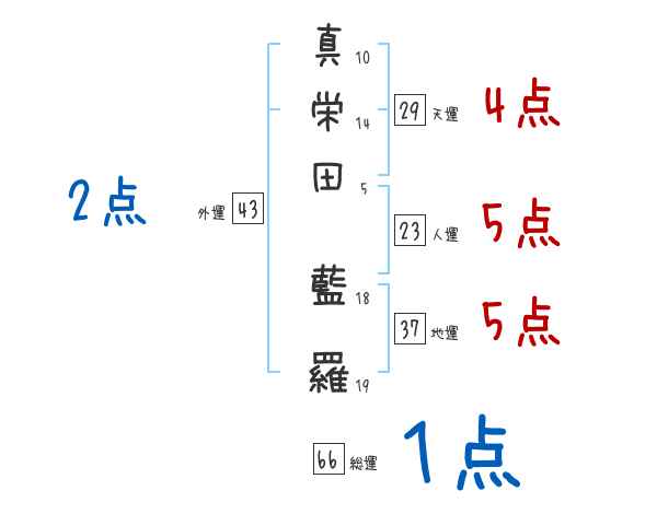 天運![]() | 真栄田藍羅さんの天運は29画の4つ星!完全主義で才能がある。厳格な心の持ち主。 家系が持つ宿命的な運勢を表します。祖先から受け継いだ苗字ですので自分の力が及びません。家柄を象徴します。 |