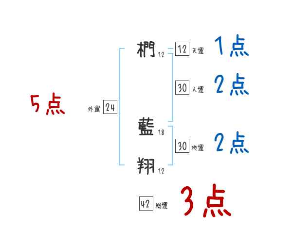 椚藍翔さんの画数の鑑定結果