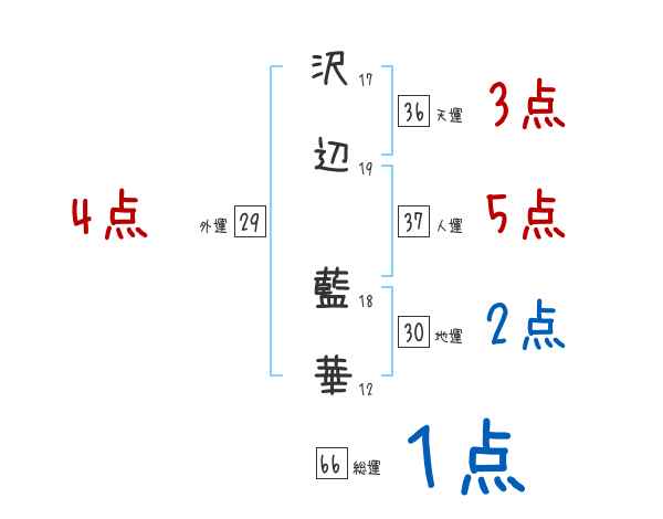 沢辺藍華さんの画数の鑑定結果
