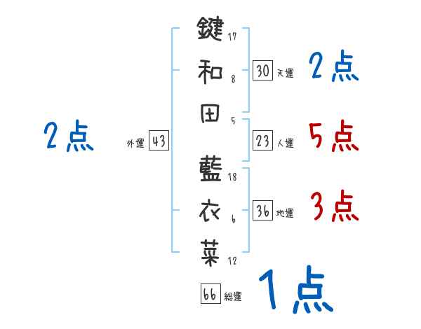 鍵和田藍衣菜さんの画数の鑑定結果