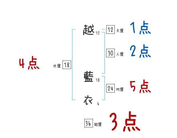外運![]() | 越藍衣さんの外運は18画の4つ星!情熱的で剛気。忍耐力があり信頼される。 生活面を象徴する運勢です。外部から受ける影響力を表し、結婚運、家庭運や職場、環境への順応性を表します。 |