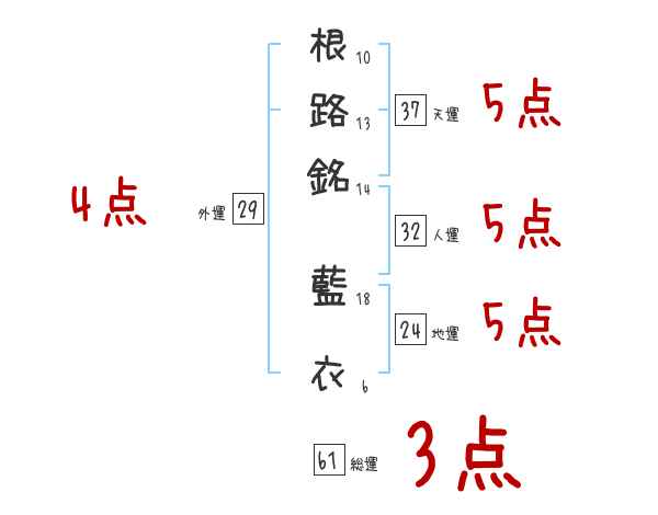 根路銘藍衣さんの画数の鑑定結果
