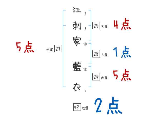 外運![]() | 江刺家藍衣さんの外運は21画の5つ星!統率力がある。独立し成功する。名誉を手に入れる。 生活面を象徴する運勢です。外部から受ける影響力を表し、結婚運、家庭運や職場、環境への順応性を表します。 |