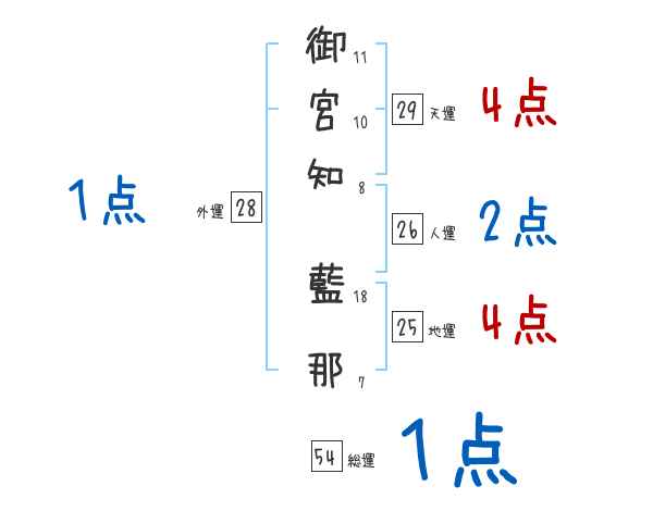 御宮知藍那さんの画数の鑑定結果