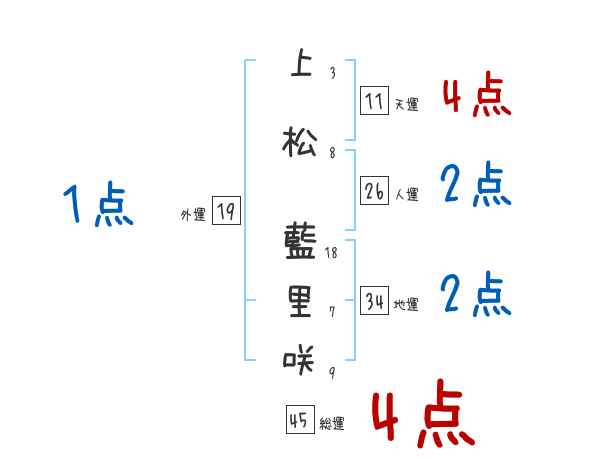 上松藍里咲さんの画数の鑑定結果
