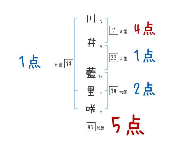 天運![]() | 川井藍里咲さんの天運は7画の4つ星!強い意志や信念を持ち独立心が強い。自立する。 家系が持つ宿命的な運勢を表します。祖先から受け継いだ苗字ですので自分の力が及びません。家柄を象徴します。 |
