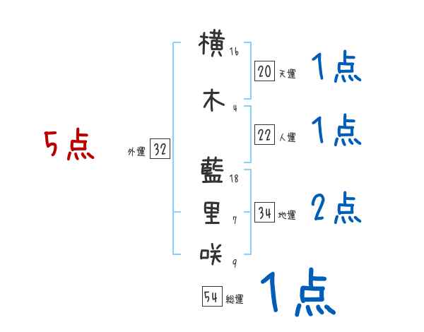 外運![]() | 横木藍里咲さんの外運は32画の5つ星!柔軟性があり成功する。チャンスが多く金運が良い。 生活面を象徴する運勢です。外部から受ける影響力を表し、結婚運、家庭運や職場、環境への順応性を表します。 |