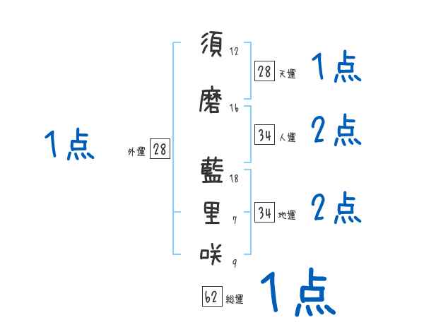 天運![]() | 須磨藍里咲さんの天運は28画の1つ星!家庭環境に注意。スポーツで活躍できる能力があるかも。 家系が持つ宿命的な運勢を表します。祖先から受け継いだ苗字ですので自分の力が及びません。家柄を象徴します。 |