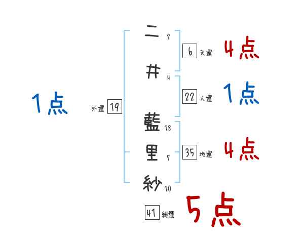 天運![]() | 二井藍里紗さんの天運は6画の4つ星!慎重な努力家で信頼を得る。誠実な精神で向上心に優れる。 家系が持つ宿命的な運勢を表します。祖先から受け継いだ苗字ですので自分の力が及びません。家柄を象徴します。 |