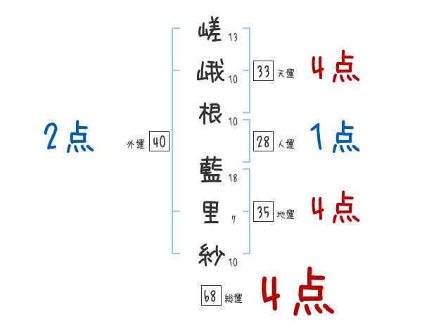 嵯峨根藍里紗さんの総運は68画の4つ星
