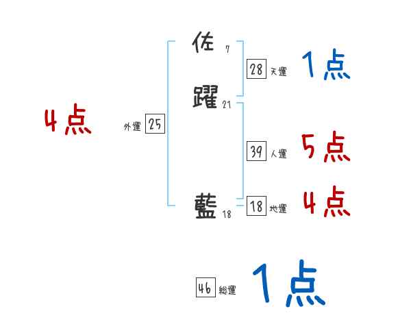 佐躍藍さんの画数の鑑定結果