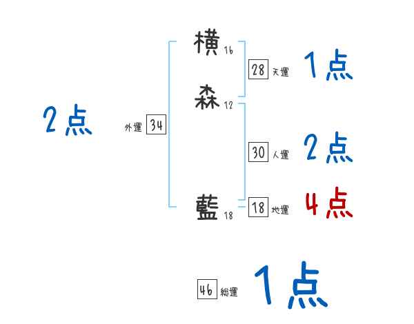 横森藍さんの画数の鑑定結果