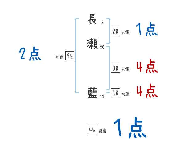 天運![]() | 長瀬藍さんの天運は28画の1つ星!家庭環境に注意。スポーツで活躍できる能力があるかも。 家系が持つ宿命的な運勢を表します。祖先から受け継いだ苗字ですので自分の力が及びません。家柄を象徴します。 |