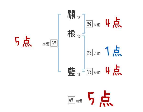 關根藍さんの画数の鑑定結果